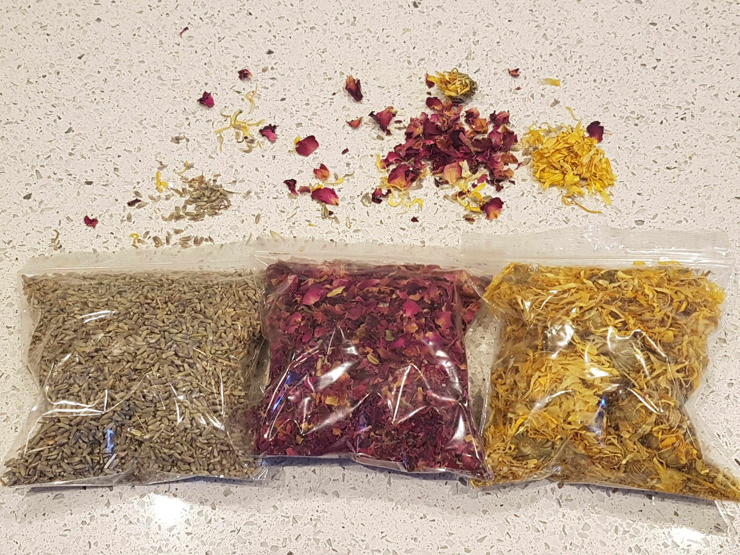 Spruce up your hand-made soaps with real dried petals and flowers from Rose, Lavender and Marigold.